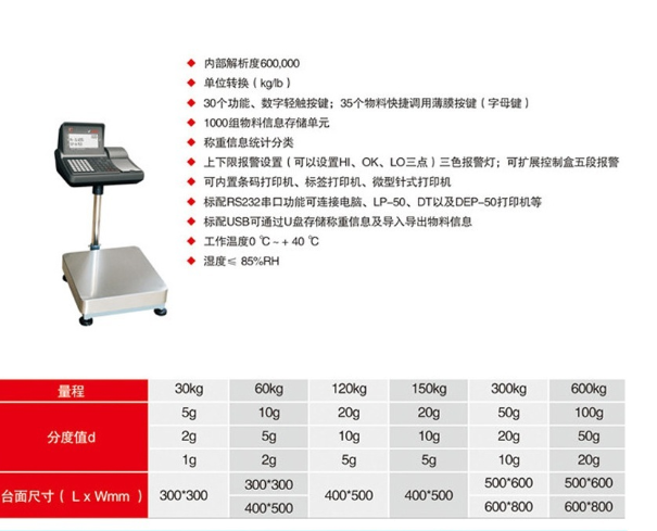 磅科智能打印秤,標簽可自由設(shè)置還可以加條碼形式,電子秤還可以設(shè)置上下限報警,連接電腦,還能使用U盤存儲等功能